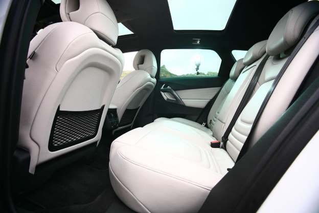 而絕不媚俗但又神采飛揚的筆觸行走至座艙,依舊展現出DS 5無以言喻的美感氛圍,依然充滿弧度的線條,總會在你覺得該收起時再度揮灑昂揚,該延伸拉抬時卻又陡然收筆,簡直鬼斧神工,而軟質粗顆粒塑料、鍍金屬飾板以及細緻的皮革包裹住整個車室,饒富興味的非正圓方向盤、波浪般的中控台以及如鯊魚鰓般的按鍵組也處處充滿賞玩樂趣,可惜的是,三片式全景天窗中央肋脊相當突出,雖然視覺開闊感看似不錯,但若關起遮陽簾後則顯得頗為幽閉,頭部空間也實在不優渥,所幸除此之外肩腿空間不算狹隘(行李箱則不算深長),雖然以車身尺碼與軸距來看也難稱如何寬敞開闊就是。