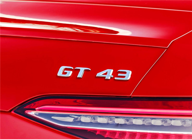 觀過往 AMG 家族的命名方式皆按照動力形式有著一套規則,43 車系意指搭載 3.0L V6 雙渦輪引擎,但 GT43 卻打破這一慣例,搭載與 GT53 相同的代號 M256 之 3.0L 直 6 雙渦輪引擎,擁有 48V 電能系統以及可提供 22hp 動能的 EQ Boost 電動馬達,不過在整體動力輸出部份 GT43 則稍微調降,從 GT53 的 435hp / 53kgm 調降至 367hp / 51kgm,0-100km/h 加速為 4.9 秒 (GT53為4.5秒),極速可達 270 km/h (GT53為285km/h)。